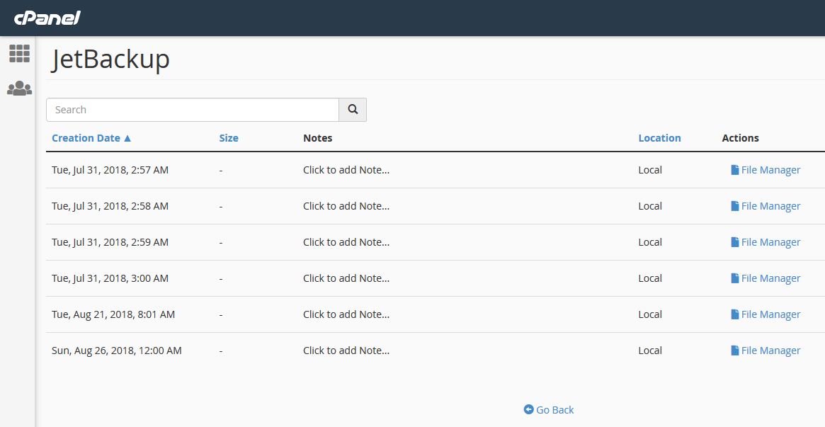To view file manager for the backup click on File Manager.